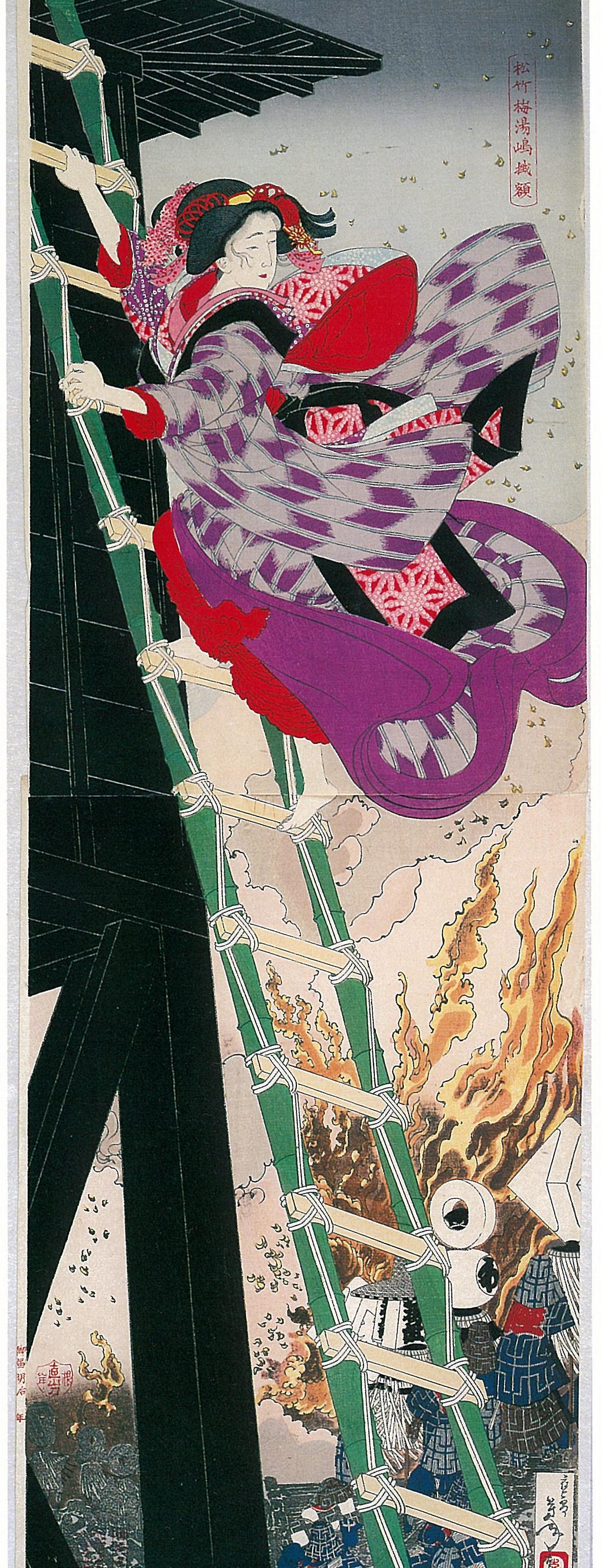 It’s the first day of the Year of the Horse in the Chinese Lunar Calendar. Not only is it the Year of the Horse, it’s the year of the Fire Horse, a once in 60 year phenomenon. In Japan, the Year of the Fire Horse has seen significantly low birth rates because women born during that year were deemed to be dangerous. In 1682, one particular woman, Yaoya Oshichi, was burned at the stake after she was accused of arson. The above woodblock print is a depiction of Oshichi.