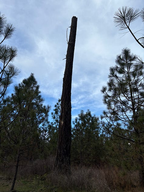 And while we walked, I noticed Rough Goose Neck Moss and thought of my brother Steve when we passed the snags he had made during the last logging.
