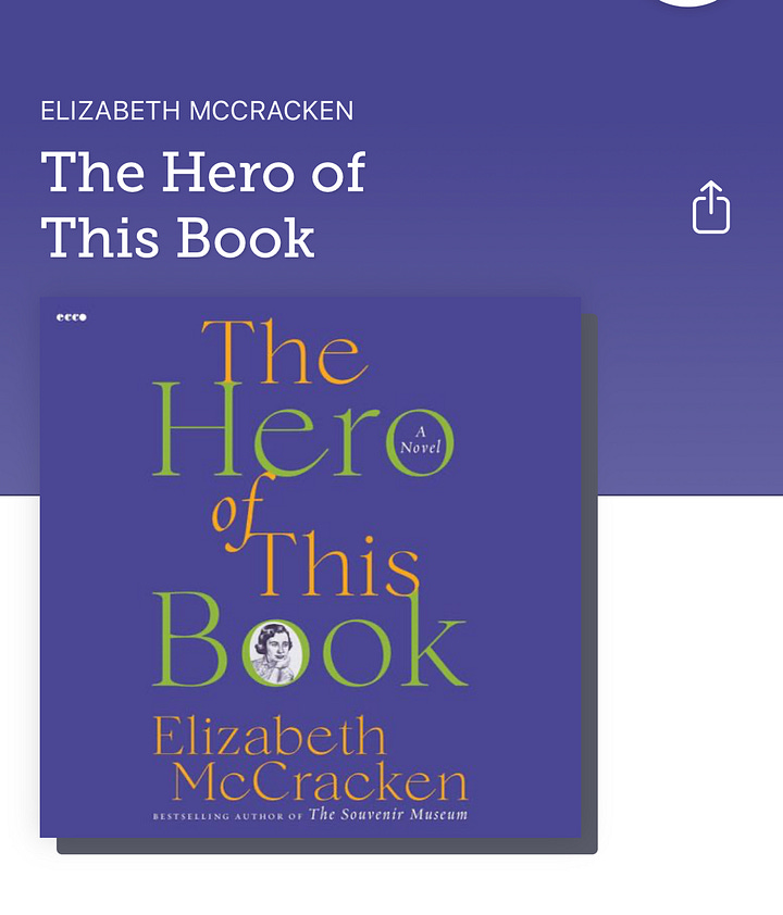 The Hero of This Book is a novel/memoir (the author plays with this a lot in the book) about a woman whose mother passed two years prior. The setting moves from London where the woman is now and the U.S. (Iowa and Massachusetts) where the mother lived and worked. McCracken is clear-eyed, snarky, and very funny. I like her so much, I just started another book by her, An Exact Replica of a Figment of My Imagination.