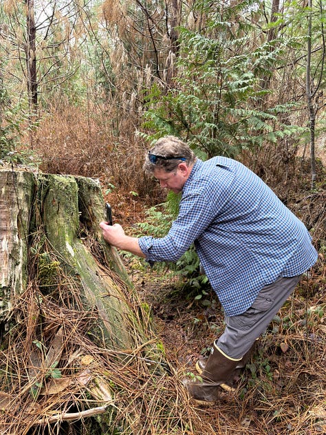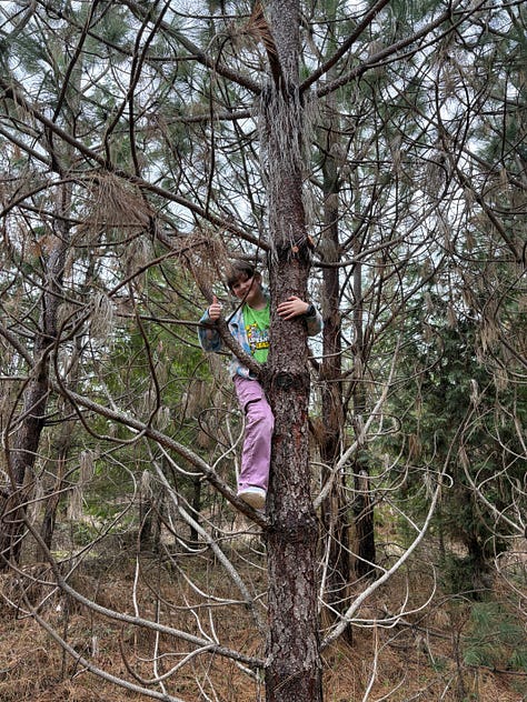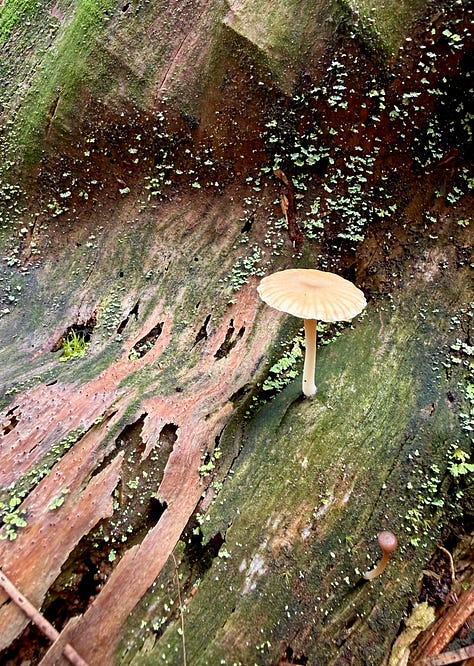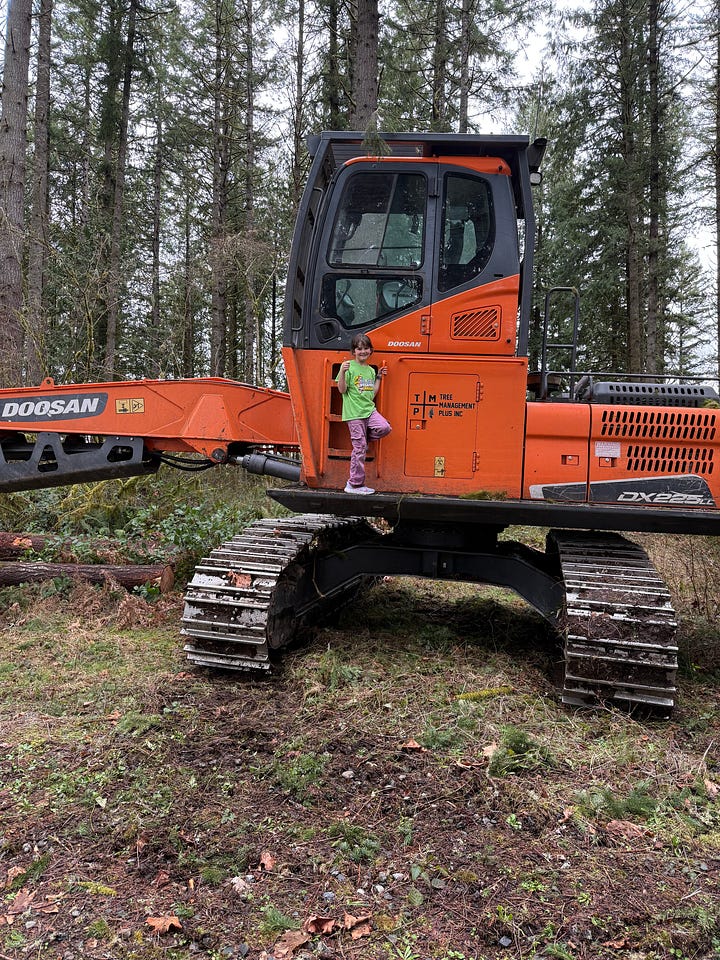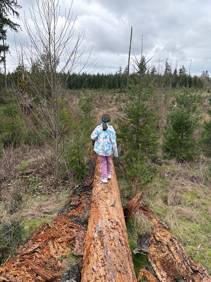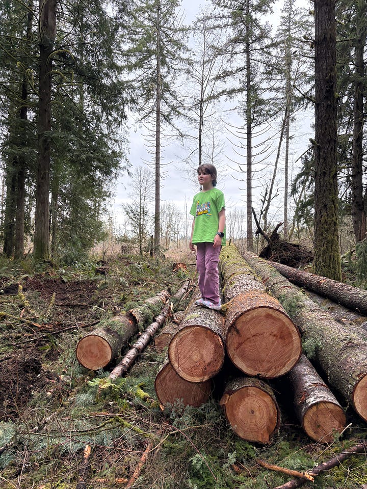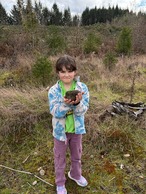 One of the best things about tending a forest is seeing that forest through others’ eyes. My cousin Casey and family visited this week and we traipsed about. Azalea found a rock I’d never have noticed—she wanted to be the trailblazer and led the way when our path was blocked by downed trees (we’re logging the trees felled in the wind storm last year.)